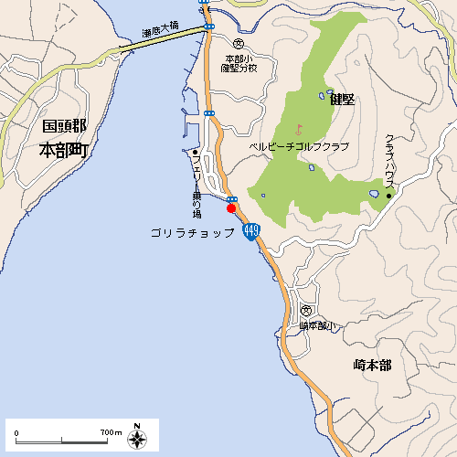 58号線を北へ走り、北谷町に入ってアメリカンビレッジ付近を通り過ぎて、3分程度走った所にある、『浜川』という信号機を左折します。(浜川の信号機の10メートルほど手前にモスバーガーとSEGAがあります。)