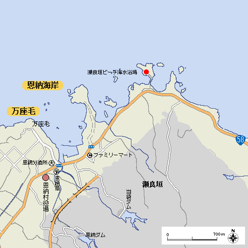 58号線を南へ走り、嘉手納基地を通り過ぎて、右手にあるファミリーマートのある信号を右折します。
