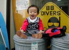 バグルボックスのボスでもあるなぎやのページです。こんなくだらないページを最後まで見ていただき あなたは なんていい人(ダイバー)なんだろう!ありがとうございます。親バカだと思って許してやって下さい!ただやつは何時現れるかわかりません。まだまだお昼寝が必要な年頃です。 おこしの際に出会えたら 一緒に写真でも撮ってやってくださいね!沖縄のいい思い出の1つとして! そして急いでない人は次のページ なぎや&しのんのホームルーム(HR)をお楽しみ下さい! なぎパパより