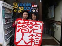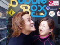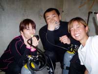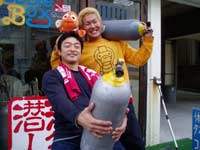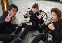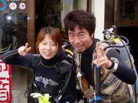 こちらの変な顔の体験ダイバー、厚さんと恵美さんです。かなりノリのいい感じで常に笑いのあるお二人でした。厚さんは笑いのなかにもドキドキしていたらしく、お店を出る時「死なないようにいってきます」って不安がっていました(笑)でもすぐに慣れて水中を楽しんでましたね。たくさんの魚に囲まれて二人とも顔が見えませんでした!お二人ならすぐライセンス取れますよ!またハイテンションで遊びに来てくださいネ!待ってま〜す! |