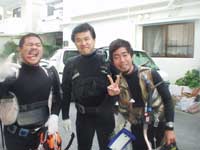 今日OWスクールを卒業の田中さんです。今日はたまたま出勤のボスも一緒です。田中さんはとても上手で落ち着いてましたね。お花畑にに行く途中、遠くにナポレオンらしき影が見えました。大きかったですね〜!なかなか見れませんよ。スクール中に(笑)ボスのおかげかも!?これからもたくさん潜ってもっともっと上手になってください!合格おめでとうございます! |
