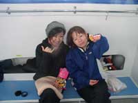 はい、コソコソしてポーズを話し合ってた白鳥さんと国保さんです。今日は寒かったですね〜!!陸でも元気なお二人ですが水中でも元気いっぱいですね!あまり透明度は良くなかったですが、タイワンカマスの群れ、大きなコブシメ、ツマジロオコゼ、スカシテンジクダイを見ましたね。白鳥さんはスカシテンジクダイが気に入った様子で、ず〜っと見てましたね!明日も頑張っていきますよ〜!! |
