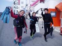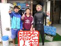 今日の体験ダイビングは茨城から来てくれた鈴木さん、田中さん、川田さんの3人!みんなもじもじになって若々しい笑顔を振りまいてました!実際若いんだけね!!!さぁ水の中でもたくさんの魚達とたわむれて観音様にも挨拶してきました!なにをお願いしたのかな?次はライセンスを取ってもっともっと海を楽しみましょうね!!!また遊びに来て下さい!!!!! |