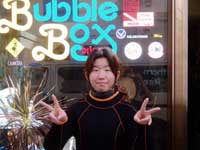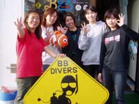 今日は体験ダイビングのちえさんです!とっても明るい女の子でした!!最初はとってもドキドキしていましたが、練習するにつれ落ち着いたんですが、ここで問題が!!ちえさんは魚が嫌いだったんですねぇ・・・餌付けのフをすぐに水中に投げつけていました(笑)魚が寄ってくるのを見ずにすぐ二人で泳ぎだしました。珊瑚が見たいというリクエストだったので、触って遊びました。ちえさんは海の綺麗さにとても感動したようです!!今度は洞窟にいきましょう!感動すること間違いなしですよ!!あとBBの曲も作ってくださ〜い!!また遊びに来て下さいね!!待ってマ〜ス!!! |