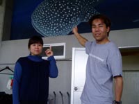 今日は久しぶりにジンベイ君に会いに行きました!早織さんと津田さんです。午前中に砂辺に潜りました。お二人とも初沖縄ダイブということで見るもの全てカメラで撮ったっていう感じです(笑)ヨコスジタマガシラからはじまり、観音様、クビアカハゼ、ウミヘビ、クマノミ、ツマジロオコゼの他、多数(笑)ログブックがいっぱいになってました。珊瑚も綺麗でしたね〜!!午後はジンベイザメに会いに行きました。少し流れはあったものの、ジンベイザメの大きさにビックリしたんじゃないでしょうか??上手く撮れているといいですね!!また遊びに来て下さいね!! |