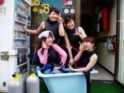 今日はかなり仲の良い四人組の初の洞窟スノーケルでーす!仲が良すぎるために四人でお風呂にはいっちゃってます!!こんな調子で真栄田岬のドキドキコースにチャレンジしました。降りる崖を見て生唾ごくり、四人ともかなり慎重にかつ、遊びながら冒険するかのように降りていきました。そして洞窟に着いたらかなり泳ぐ前なのに、まだ十代なのに疲れていました。一喝して、泳ぎ始めたら洞窟のすごい青さに感動して疲れがどこかいっちゃってたね。また来たら今度はダイビングしよーね! |
