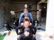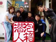 →の写真いいチームワークでしょう。前から、ともちゃん、なおや、わかつ、まーしー、くーにーのにぎやかな面々です。まーしーは体験ダイビングにきてくれました。かなり上手だった。ライセンスとりに着てね。ともちゃんは本日ライセンス合格。おめでとうー。これからもいーーーっぱい楽しいダイビングをしようね。次はマイ器材でアドバンスだね。他の3名はバブルボックスの卒業生私とも合言葉は『ピンクのハンカチ』気はやさしくて力持ち(??)のうちなんちゅです。ハンカチのない日も遊びにきてね。 |