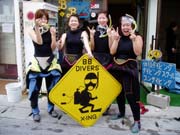 今日で最後のダイビング!!最初より潜れるようになったよ☆すごくたのしかった!!また絶対に沖縄来たら潜ってやる♪♪♪和田ケンそして、B.Bのみなさん☆ありがとう(>0<)vあんり 3日目も無事終了!!オープンウォーターも無事合格!!!!!いやぁ〜ヨカッタ(σ∪σ)♪初めてのダイビングでオープンウォーター取ってみたけど、すごい楽しかった☆B.Bも楽しかった!!!ショップの人たちとこんなにワイワイできると思ってなかったし・・・・サイコーじゃないですか☆☆☆2日目の夜、和田ケン邸でキムチ鍋作ってみんなで食べたり、最終日にB.Bでお好み焼きパーティーしたりとか、思い出いっぱいできました。ありがとー(’∀’)今度は、アドバンスとりに来るさ〜♪もっといろんな魚とかウミヘビとか、いっぱいみるぞ!!!!沖縄遊び来た時にゃ顔出しに来ちゃうから☆また、みんなでパーティーして騒ぎたいっ(`∇´)!!3日間本当にありがとうございいました♪♪♪あゆみ |