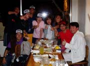 ファンダイブはりきっていってみよーー!!メンバーは、 、BB常連のみどりこ。ちかちゃん、BB5日目たんばさんです。まずはクロスラインへ、1番めずらしいといわれるトウアカクマノミのいるポイントです。トウアカのいるイソギンチャクはすんごくひっつく。みんなその感触に目をまるくしていました。でもそのイソギンチャクにはきれいな透明のカクレエビがたくさんいたね。2本目はナカユクイに潜りました。ヨスジフエダイにハダカハオコゼ。今日は砂が真っ白な癒し系のポイントでした。天気もよくてみんな大満足。ランチは港のテーブルで食べました。青空の下で食べるのって最高!!今日はダイビングの合い間に『あおさ』海草みたいな海苔みたいの。をとって、夕方みその鍋にしてみんなでたべました。海の恵でおなかいっぱいさぁ〜。 |