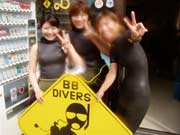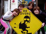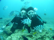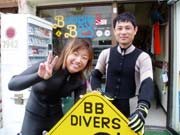 今日は久しぶりに、晴れたぞーー!!いぇーーい!っということで本日は岡山県から来てくれたナイスガールなお二人の体験ダイビングです。メンバーはユカリちゃんとゆかりちゃんです。って同じ名前じゃん!!つーわけでこの二人はとっても仲良し!海にはいっても二人とも仲良くのーんびりと海の中で楽しんでました。途中でニモの仲間を見たり、魚に餌をあげたり、一番ビックリしてたのは、海の中にあった観音様でした。どんな願い事をしたのかな?また、機会があればお店の方に顔をだして、また一緒に潜りましょうね! |