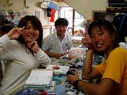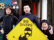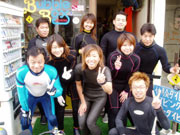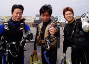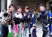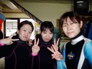 女のこ3名の体験ダイビングです。メンバーは岐阜県からきてくれた、クミコちゃんカナちゃんユミエちゃんです。最初はずいぶん緊張していたようだけど。みんな観音様のところまでいけたね。何をおねがいしたのかな?ソフトコーラルも綺麗だったね。グルクマの群れやクマノミもみたね。暖かくなったらまた来てね、今日は雨だったけど、次回は晴れるといいね。その時はご飯も一緒に食べに行こうね。みんなを送ったあと、タッキーに3人から若く見られてたと伝えたらとーーーっても喜んでいましたよ。今日は一緒に潜れて楽しかったです。また遊ぼうね。掲示板とかも時々参加してね。 |
