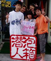 愛知県からきてくれた、ゆうきち、こもさん、てるやくんの体験ダイビングです。わけあって、昨日潜る予定が、今日になった3人です。(いわゆる飲みすぎでの寝坊です。)そんなにくめないキャラの3人はさすが男の子といった泳ぎっぷり、自分達でガンガンおよいでついてきます。海の底から眺める水面はキラキラしててきれいだったしょう。次はもっと遠くへもっと深くにも挑戦しようか?3人ならぜったい平気だよ。でもさぁ〜それにしても、飲み会これればよかったのにねぇ。ちょっぴり残念だよねぇ。そんな所も3人のかわいい所かな。次回に期待だね。また遊びにきてね。こもさん、てるやくんサーフィンライフもエンジョイしてね。ゆーきちの波乗りデビューも楽しみにしてるよ。やっぱり海は最高さぁ〜。 |