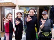 はいさい!健太郎です!今日は愛知から来てくれた大学生の美女4人組!ミホ、ミサ、アヤエ、サトコです!みんな初めての体験ダイビングではじめはちょっとビックリしたけど水の中に入ってしまったら大丈夫だったね!たくさん魚達が迎えてくれたでしょ!そっちにビックリした!?観音様にも会いにいけたし、ニモの親戚のクマノミにも会えちゃったし!ナマコも触っちゃったーーーー!ぶにょぶにょで気持ち良かったでし(^0^)また暖かくなったら遊びに来てね! |