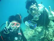 今日は川崎から来てくれたエビちゃんが体験ダイビングで〜すッ♪あいにくの空模様だし、初めてのダイビングということで初めは緊張していたエビちゃんでしたが、海の中ではもうバッチリ!!お魚サンにゴハンをあげている時も、魚を捕まえようとする余裕も・・・ 今度は是非OWに挑戦してダイバーの仲間入りしましょ〜☆ |