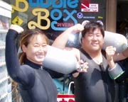 スクール初日のせっちゃんです。以前BBに体験ダイブをやりに来てくれた1人で 最初は友達に誘われ コワゴワの参加でしたがビックリ!「これって私にあってるじゃにの?」って事で今回ライセンスに挑戦!もちろん1日目からすくすくと育ちました^0^!バランスの練習したり 色々の対処をしたり 体験ダイビングも面白いけど 自分で理由や理屈がわかると かなり面白いでしょ。そして何でも出来るように 育てますから 明日からも期待して 楽しい講習にしますからね。がんばるっぞ〜〜!お〜〜! |