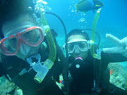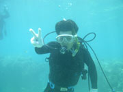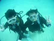 こんちっわーっす!!今日もすがすがしい暖かさなのでかなり気合入ってます!!そんな訳で家族旅行で大阪から仲良くきてくれたヨシクラさんファミリーの体験ダイビングです。でも今回はお父さんとお母さんは見学と言う事でメンバーはヨウイチさんとナツコさんです。最初緊張気味だった二人も、魚にごはんをあげた途端にテンションが最高潮に達していました。その頃になると一人で泳いで遊んでいました。二人ともかなり上手いんでまた来る機会があればダイビングをして一緒に遊びましょうね!! |
