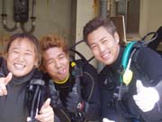 オープンウォーター講習3人 茶レンジャイ 田中君 星さんです。1人変なのがいるけど 気にせず 講習開始です。ゆっくり練習で 3人とも順調に進み始めました。海の中の楽しさを 覚えながら 海の中の色々な 対処にやり方を勉強しました。今日で4月も終わりです。明日5月に向けて このポーズで最後終了してみました。明日もがんばるぞ!!お〜〜〜!! |