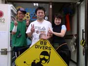 ビーチファン片岡さん夫婦 坂本さんくまちゃんです。GW始まったばかりでの天気快調!いいんじゃないですか?まだ水温が上がりきっていないのですが 天気は晴れ!海穏やかで始まりました。片岡さん夫婦はメチャメチャ久しぶりのダイビングでまずはのんびりと行きました。坂本さんも久しぶりのダイビングでしたが全然余裕でかなり立派なもんです。でもかなり寒かったようで・・・・大丈夫でしたか?くまちゃんは合宿4日目でかなりのコツを掴んできた様子です。ドンドン立派なダイバーらしくなってきました。 |
