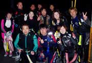 ちっわーーす!!今宵の素敵な夜を飾るのはナイトダイビングでーす。メンバーはアドバンス講習中のダイスケくんとファンダイビングのギマちゃんでーーす。さあー、二人とも始めてのナイトとあってかなり興奮気味でした。特にギマちゃんはナイト合わせてこの日4ダイブ!!の割にはすごい元気でした。海の中はというと、ヒメセミエビや、タコ、アワビの仲間、夜光虫など、そしてやっぱり何が一番いいってそれは昼間とは全く違う海の世界だよねーー!!また絶対ナイトやろーね! |