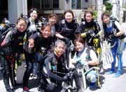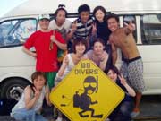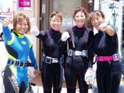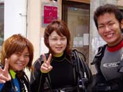私が千葉でダイブマスターのトレーニングをしていた頃の仲間達が8名集って沖縄に遊びに来てくれました。メンバーは、えっちゃん、ゆにちゃん、児玉さん、淺川さん、立川さん、ゆきえちゃん、やよいちゃん、ひろみちゃん、のパワフルメンバーです。到着日の今日も午後から2本もぐりました。まずは、砂辺の観音様に挨拶してから、真栄田岬の洞窟ダイブ。夜は居酒屋で宴会。そして明日はジンベイと潜るのだ!!沖縄の海を思い切り楽しもうね。 |