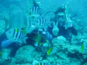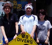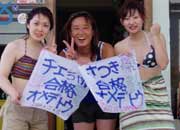 女の子3名Aコースです。とにかくほんの少しだけダイビングを味わいたいとやってきた3人ですが 青い魚など いっぱい見たよね!浅い所でも十分魚は寄って来てくれるし、この魚捕まえたら売れるんじゃないの!なんて 思えるのが いっぱいだったですね。でも捕まえて売らないで下さい・・・^^;残りの沖縄も楽しんで下さいね!帰りにジュースの差し入れありがとうございました。美味しく頂きました。 |