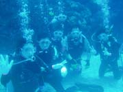 体験ダイブBコースに林さん親子が挑戦しました。12歳のけいすけくんは、楽しみ〜!!とニコニコ笑顔。ママたまきさんは、怖いなぁ〜と、不安そうな表情。。対照的な2人です。でも2人とも、大きな魚、ツバメウオも見れたし、ニモにだって会えたね!お母さん、よくがんばりましたねぇ。でも最後の方はダイバーっぽくなってましたよ。けいすけくん、いつかライセンスにも挑戦してね。きっとかっこいいダイバーになれるよ。ご家族でまた遊びに来てくださいね。 |