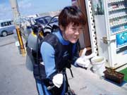 山本みっちゃんがオープンウォーターライセンスコースを受けに着てくれました。1人旅なんてへっちゃらの、元気でたくましい女の子です。沖縄到着日の今日からさっそく海へ入りました。はじめはタンクの重さにびっくりしたけど、海の中ではお魚にいっぱいかこまれて楽しかったね。最大の難関といわれるマスク脱着も初日の今日にみごとクリア!!うーんなかなか見込みあるぞー!あさってにはきっとかっこいいダイバーになるはず! |