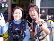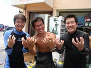 みっちゃん最終日!みごと合格です。おめでとう!!!とっても上手になりました。さすが、がんばりやさんのみっちゃん!!えらいぞー!!最後はファンダイブ気分でもぐれたね。今日からダイバーだ!これから、思いっきりダイビングをたのしまなくちゃね!ハワイでのダイビングの予定がすでにあるというみっちゃん!楽しみだねぇ〜。ステキなダイビングになるといいねぇ。今日は早く海が終ったので、午後はアメリカンビレッジでのショッピングを楽しんだみっちゃんでした。また沖縄にきてね!! |