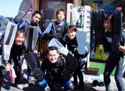 OWスクール初日の さつきちゃんとちえちゃんです。さつきちゃんはなまら寒い北海道から来てくれました。ちえちゃんは、東京からのお越しです。本日初対面の2人ですが、同い年という事もあって、すぐに仲良しに!新しい友達ができるのもダイビングの魅力の1つだね。2人とも体験ダイビングをやった事があるせいか、 おちついて水中のスキルをなんなくこなしていきます。明日もこの調子で楽しく上手になろうね!がんばるぞーー! |