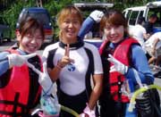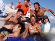 洞窟スノーケル8名です。水野さんチームの女のこ4名(彼女達はナースのたまごだそうです)&たにぐちさんチームの」これまた女のこ4名(いろんな訳あって彼女達の事をハラキリチームともいう。)。というわけで、私をふくめて女9人で洞窟を目指しスノーケル開始!!でっかい魚(ツバメ魚)にキャーキャー!きびなごのキラキラの群れにキャーキャー!洞窟の青の光にキャーキャー!!!ってな感じです。みんなでわいわい楽しかったね。最後にとった写真よかったらお店におくってください!飾りたいでーす!みんな沖縄の海を満喫できたかな?また遊びにきてね!!ちなみにりょうこは日本語カタコトです。(笑) |