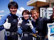 ジンベエ体験ダイビング参加の三浦さんと館山さんの美女2名!仙台から遊びに来てくれました!三浦さんは初ダイビングで最初はちょっぴりビックリしたけど海の中に入ってからはぜんぜん問題なかったね!館山さんはさすがに経験者だけの事はあるなぁという感じでとっても落ち着いていました!さぁさぁ海の中ではジンベエザメのSUN君が待っていました!網の外からでしたがしっかりおさわりできましたね(^0^)次回はライセンスをGETして網の中で一緒に泳ぎましょう! |