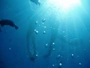 菊ちゃん 岩口さん アドバンスのナイトダイブです。ダイブマスタートレーニング中のキムタク??ことキャプテンとおなかぽんぽん、ポンポコさんも一緒にもぐりました。ポンポコさんはこの夜のダイビングで50ダイブ記念をむかえました。暗く神秘的な海の中で、 みんなでお祝いをしました。キャプテン以外の3名はナイト初めてで夜光虫のキラキラに感動!ナイト経験済みのキャプテンは、おいしそうな獲物を探してました。イセエビ、タコ、イカ。。。。。 |