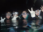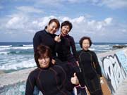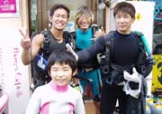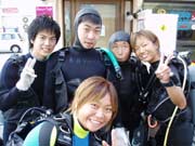 京都からきてくれた、にしむらさんチーム4名の体験ダイビングです。 メンバーはナオエちゃん、ノリコちゃん、ただひこさん、ゆうしろうさんです。陸での説明、陸での練習を済ませいざ海へ、少しだけ流れがあったけれど、みんな−8メートルの水底にみごと到着!餌おあげたら魚がわんさか集まってきたね。くにょくにょのやわらかいサンゴにさわったり、空を飛ぶようにおよいだり。。。きもちよかったねぇ。次に沖縄にきたときも、またダイビングに挑戦してね!今度はボートダイビングでもしてみる?? |