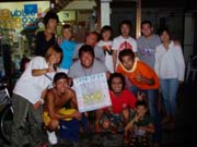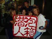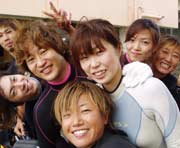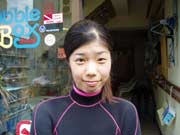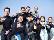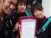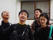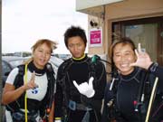 今日は7人のダイバー軍団&我が生徒なぎさの計8名のわいわいにぎやかだいびんぐです。ビーチダイビングとジンベイダイビングです。7名チームのメンバーは、斎藤さん。大野さん、和美さん、新井さん、池田さん、そして紅一点の津村やよいちゃ〜ん。やよいちゃんはジンベイダイブにて祝50本!!おめでとう。メンバーがやよいちゃんにみつからないように、こっそりお祝いタオルを作っている姿が微笑ましかったなぁ。みんな、ステキなスマイルのいいメンバーだね。そしてじゃじゃーーん渚がダイバーの仲間入りしましたぁ〜!!おめでとう!初のファンダイブでジンベイにさわれるなんてすごいよねぇ。台風などがあり長いみちのりだったけど、これからも、おもいきり海を楽しんでね。ヨットをおしえてあげているこども達にもたまに、ダイビングの話もしてあげてね。みんなみんな〜またきっと遊びにきてね〜。 |