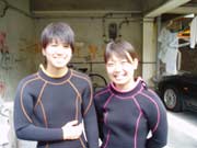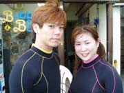 こ〜んにちわ〜〜!!最近ドラえもんと言われ始めてるのりこです!別に体型のことじゃないんですよ!!スーツがドラえもん色だからってことですよ!!!!・・・と、いうわけで宮島さんカップルの体験ダイビングにいってきました!いや〜2人とも上手でしたね!!呼吸も耳抜きもバッチリ!!海の中も楽しかったね〜!!青い魚や黒と白の魚もいっぱいいました!今度は自分でも潜ることができるようにライセンスをとりにきてみては?2人ならできるはず!!また遊びに来てくださいね!待ってますよーーー☆★ |