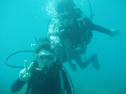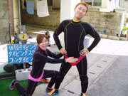 かわいいかわいい2人組の体験ダイビング!お店で説明を聞いたあと、呼吸の練習をして海へいざ出陣!!2人とも呼吸の仕方も耳抜きもばっちりできてたね☆海の中では、大量にやってきた白と黒のお魚や、青色の魚もいたね!やわらかいサンゴにも触れたし、かなり楽しんでいたんじゃないかな?だって、水中でも顔がニヤニヤ・・・いや、にこにこしてましたよ!(^^;)2人ともすごく上手に泳ぐことができましたっ!!◎また是非遊びにきてネ!待ってるよぉぉぉん♪ |