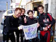 こんにちわ、BBダイバーズのみなさん11月の3日から5日までお世話になりました。僅か3日間でしたが、楽しい時間をありがとうございました。又、郁(嫁はん)の誕生日をスタッフの皆さんで祝ってくださいまして本当にありがとうございました。ちげ鍋、とても美味しかったですよ!!嫁はんが帰りの車の中で、少々涙ぐんでいました。帰るのが嫌になったみたいです...色々と言葉では、言い尽くせないくらい感謝です。沖縄でのダイビング初体験でしたが、どのダイビングも思い出一杯です。初心者の私達に色々と体験させてくれて、ありがとうございます。皆様のおかげで、この3日間で少々上手くなったような気がします。 |