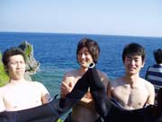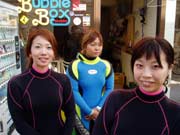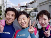 スクール最終日!ぎぶん&ねね見事合格!!おめでとう!!!ひゅーひゅー!ひゅーひゅー!!2人ともずいぶん上手になりました。泳げないよぉーって言ってたねねも、マスクの中の水をちゃんと出せるし、呼吸器の中の水だってブハーってふき出せるようになっちゃった。よくがんばったね。えらいぞー!今日からダイバーだ!!これから思い切りたのしまなくちゃね!明日は初のファンダイブでケラマへGO!!ダイバーあこがれのケラマだよ、キラキラの海が2人をまってるぜ!(??→の写真のサトシ、ウェットの上から、パンツはいてる??) |