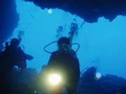 山下さん しんごとファンダイブで 今日は 上級者の人達が集まったので 辺戸ドームに行ってきました北風に弱いポイントなので かなり波があり船より 高い波を乗り越え 行ってきました^0^;まずエントリー!ドリフトダイブです。今日は大潮のわりには 流れがなくスムーズに 潜降出来ましたよ。下でみんなで集合した後 移動して 入り口へ 大きな入り口なので中に入ってしまえば 大丈夫です。奥へ 奥へ行くと 鍾乳洞が ドンドンと見えてきます。ライトが無いと 全く見えないので 小さなライトよりは 大き目のライトが 便利です。琉球ハタンポなど洞窟独特の魚はいっぱいですが 今日は地形を中心に 探索です。また 奥へ奥へ行くと ぽっかりと 空洞になっていて顔を上げることが出来ますが そこも 真っ暗です。今日はライトが小さかったので 探せませんでしたが目の無いコオロギが いるのです。全く外からの光も無くまさに 別世界です。隣りの小さな部屋へ行くと 綺麗に連なった ツララの鍾乳洞が現れます。写真をみんなで撮ってから また メインの空洞に帰ってきました。そして そこから 出口へ 真っ暗な世界から 青い青い世界へこれまた 感動です。本当にブルーが はっきり見えます。海って青いんだな〜〜って思う瞬間です。 |