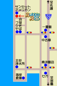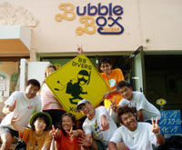 バブルボックスは沖縄のほぼ中央にある北谷町にある! メチャメチャ海に近い!目の前がダイビングのポイントなのです!やわらかい珊瑚が1面に広がるお花畑ポイント! アフターダイブは目の前の海を見ながらドリンク!もよし!ここから見えるサンセット、そう夕焼けが最高なんです。お店で自由にユンタク(のんびり)するもよし!そこから車で5分ほどにある最近注目されているアメリカンビレッジに買い物にいくもよし!結構面白いおみやげも売っている。ランチもディナーなど食べ物屋さんもいっぱいあるんです。