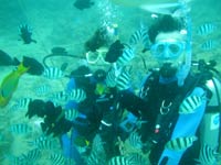 初ダイブ&初スクールに挑戦でした。水にレギュレーターを着けて潜った数分後息苦しくてこの先自分はやっていけるのかなぁと海中で汗が出てもう終わりか・・・でスタッフにアドバイスを受けて徐々に息苦しさから開放されていく自分にビックリしています。3日間のスクールでしたが1回40分程度のダイブとっても充実しあっという間に終ってしまいました。なんでもやれば出来るんですね!今回魚もいっぱいで お花畑は最高でした!必ずまた遊びにきますね!