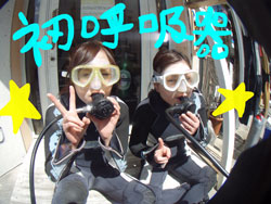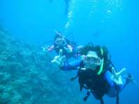 ダイビングのだいご味!だ空を飛ぶ感じを想像してみて下さい。下はなんと なんと ー25mです。ダイナミックですよ〜〜!簡単な練習をすれば みんなこんな感じで飛べるのです。特上Cコースは体験を越えた体験ダイビングです。