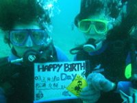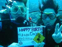 Dear バブルボックスの皆様 みか&まさみです!! 初ダイビング、超ぉ〜楽しかったです!始めは、耳抜きが出来ずドキドキだったけど、優しく教えていただいて、本番はすんなり。なぁ〜んてね。