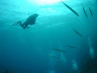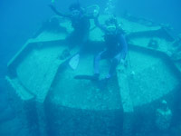 このポイントは 水中に大きな建物が2つ 1つ目は未来少年コナンって解るかな?最近でいうコナンは 名探偵コナンの方が有名だからなぁ!まぁそんな事とは 置いといて その未来少年コナンに出てくるような形をした建物が現れる!そこをグルグルした後 2つ目のUFO?に向うのだ!近づいて行くと薄っすらと見えてくる。お〜!なんだこれは!UFO?が現れる!その周りには カマスの群れが 100匹以上群れている事が多い!そしてUFO?からは何か生暖かい海水が吹き出ている!UFOポイントは 透明度がよくない時が 多いのでスタッフに相談してみて下さい!
